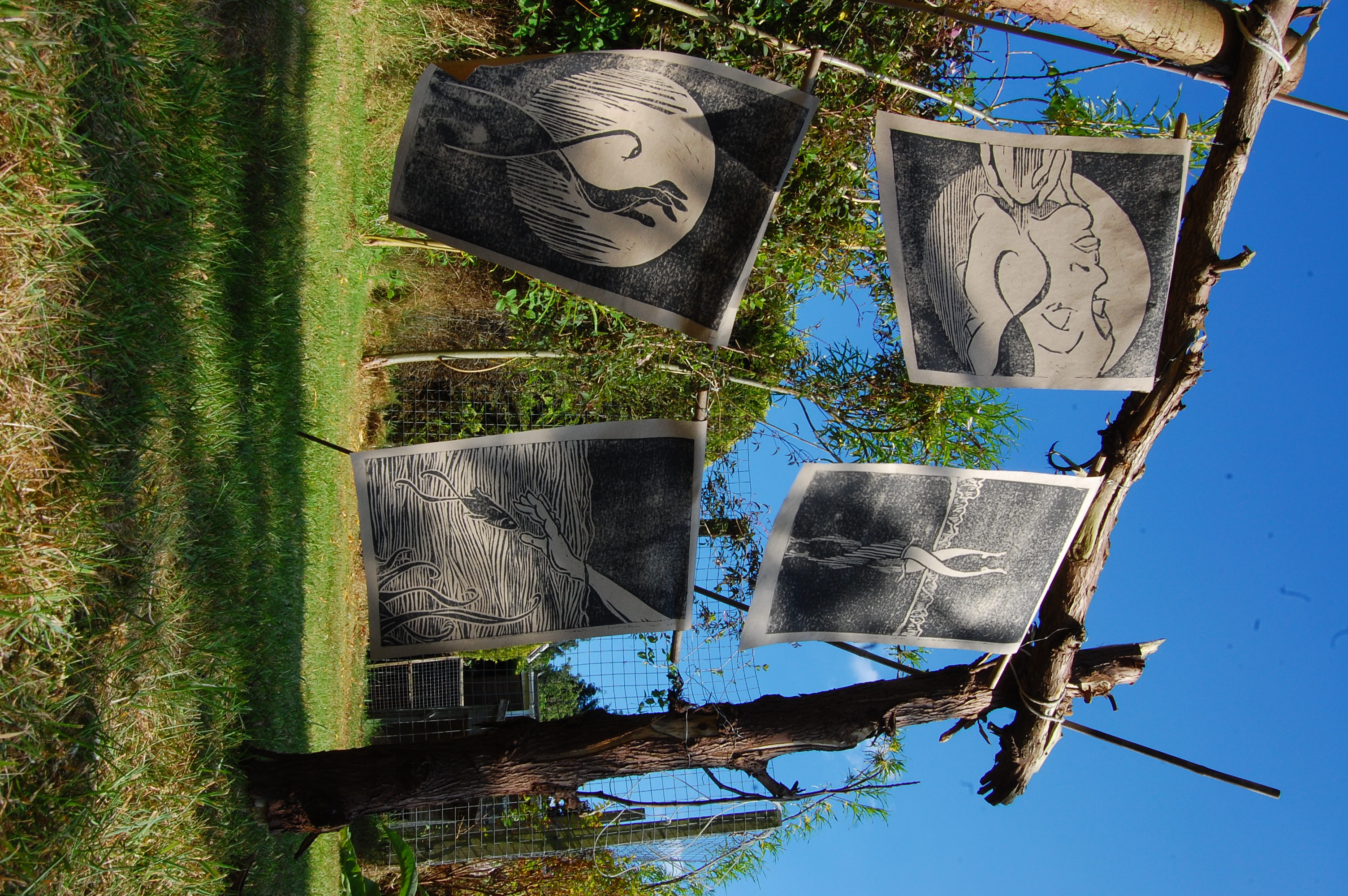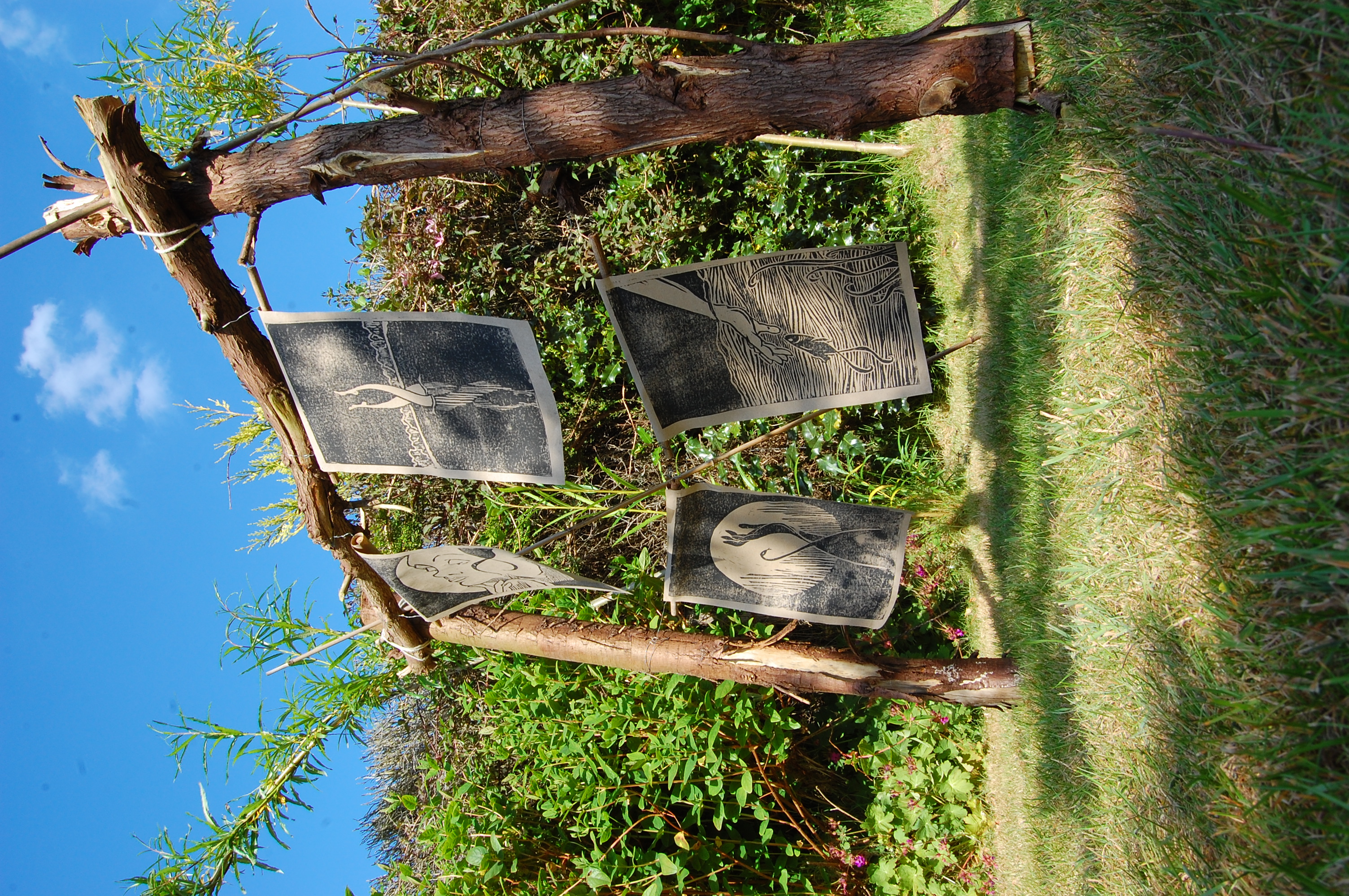 Sneha works in print and installation. She delights in storytelling and the power of image to convey immediate sensations of place, story and symbolism. Whilst locked down in the countryside, Sneha built wooden frames from fallen branches, recorded birdsong and the rush of woodland sound, and created a series of lino prints.